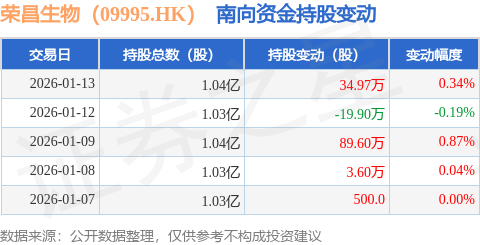证券之星消息,1月13日南向资金增持34.97万股荣昌生物(09995.HK)。近5个交易日中,获南向资金增持的有4天,累计净增持108.32万股。近20个交易日中,获南向资金减持的有6天,累计净减持17.71万股。截至目前,南向资金持有荣昌生物(09995.HK)1.04亿股,占公司已发行普通股的49.77%。