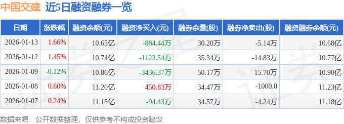 证券之星消息,截至2026年1月13日收盘,中国交建(601800)报收于8.55元,上涨1.66%,换手率0.51%,成交量60.15万手,成交额5.1亿元。