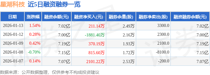 星湖科技融资融券信息显示,融资方面,当日融资买入6096.07万元,融资偿还5884.93万元,融资净买入211.14万元。融券方面,融券卖出4000.0股,融券偿还700.0股,融券余量2.49万股,融券余额18.05万元。融资融券余额7.02亿元。