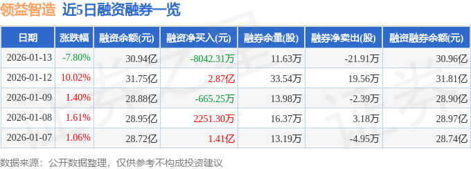 领益智造融资融券信息显示,融资方面,当日融资买入11.37亿元,融资偿还12.18亿元,融资净偿还8042.31万元。融券方面,融券卖出5600.0股,融券偿还22.47万股,融券余量11.63万股,融券余额196.55万元。融资融券余额30.96亿元。