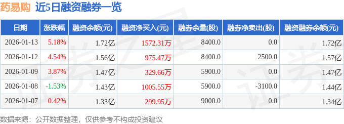 药易购融资融券信息显示,融资方面,当日融资买入9364.95万元,融资偿还7792.65万元,融资净买入1572.31万元,连续3日净买入累计2877.44万元。融券方面,融券卖出100.0股,融券偿还100.0股,融券余量8400.0股,融券余额33.94万元。融资融券余额1.72亿元。
