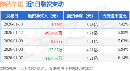 证券之星消息,1月13日,陕西华达(301517)融资买入4.8亿元,融资偿还3.03亿元,融资净买入1.77亿元,融资余额6.48亿元,当日融资净买入排名第41,近3个交易日已连续净买入累计2.27亿元,近20个交易日中有12个交易日出现融资净买入。