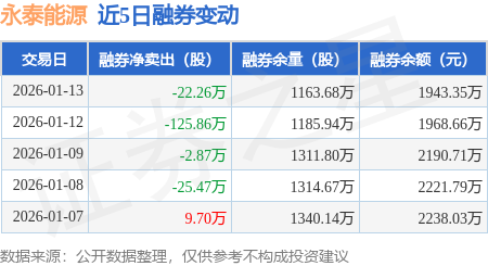 证券之星消息,1月13日,永泰能源(600157)融资买入3.35亿元,融资偿还2.95亿元,融资净买入4015.92万元,融资余额14.07亿元,近3个交易日已连续净买入累计6860.19万元。