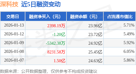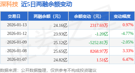 证券之星消息,1月13日,深科技(000021)融资买入4.02亿元,融资偿还3.78亿元,融资净买入2398.19万元,融资余额23.96亿元,近20个交易日中有11个交易日出现融资净买入。