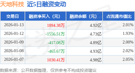 证券之星消息,1月13日,天地科技(600582)融资买入4464.53万元,融资偿还2570.14万元,融资净买入1894.38万元,融资余额4.92亿元。