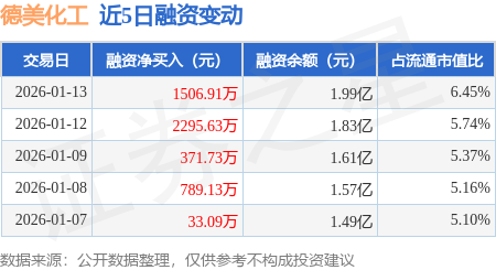 证券之星消息,1月13日,德美化工(002054)融资买入4230.72万元,融资偿还2723.8万元,融资净买入1506.91万元,融资余额1.99亿元,近3个交易日已连续净买入累计4174.27万元,近20个交易日中有12个交易日出现融资净买入。