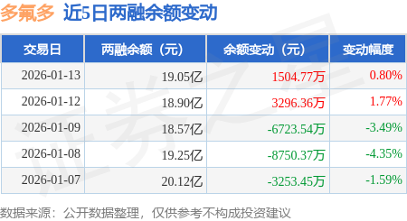 证券之星消息,1月13日,多氟多(002407)融资买入4.41亿元,融资偿还4.27亿元,融资净买入1475.63万元,融资余额19.0亿元。
