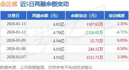 证券之星消息,1月13日,金达威(002626)融资买入3389.16万元,融资偿还2238.9万元,融资净买入1150.26万元,融资余额4.81亿元。