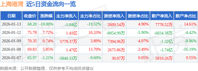 1月13日的资金流向数据方面,主力资金净流出1.04亿元,占总成交额19.52%,游资资金净流入2609.54万元,占总成交额4.9%,散户资金净流入7778.52万元,占总成交额14.61%。