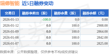 证券之星消息,1月13日,瑞德智能(301135)融资买入1676.68万元,融资偿还1007.95万元,融资净买入668.73万元,融资余额1.13亿元。
