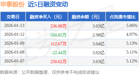 证券之星消息,1月13日,华泰股份(600308)融资买入2197.48万元,融资偿还1660.6万元,融资净买入536.88万元,融资余额3.03亿元。