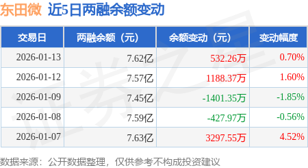证券之星消息,1月13日,东田微(301183)融资买入1.31亿元,融资偿还1.26亿元,融资净买入532.26万元,融资余额7.62亿元。