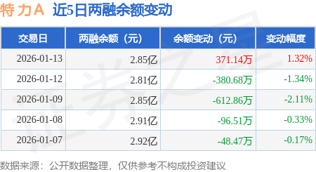 证券之星消息,1月13日,特 力A(000025)融资买入2439.94万元,融资偿还2068.34万元,融资净买入371.6万元,融资余额2.84亿元。