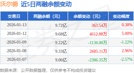 证券之星消息,1月13日,沃尔德(688028)融资买入1.12亿元,融资偿还1.09亿元,融资净买入363.54万元,融资余额9.72亿元,近20个交易日中有11个交易日出现融资净买入。