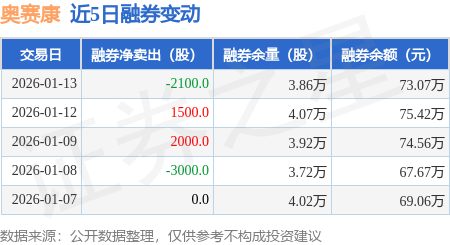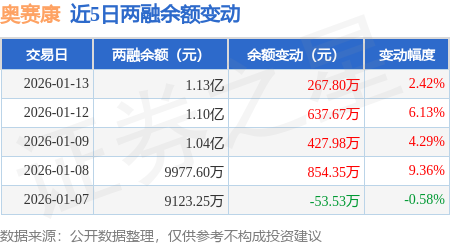 证券之星消息,1月13日,奥赛康(002755)融资买入3612.53万元,融资偿还3342.39万元,融资净买入270.14万元,融资余额1.12亿元,近3个交易日已连续净买入累计1328.04万元,近20个交易日中有12个交易日出现融资净买入。