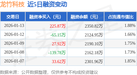 证券之星消息,1月13日,龙竹科技(920445)融资买入419.78万元,融资偿还193.91万元,融资净买入225.87万元,融资余额2350.82万元,近20个交易日中有11个交易日出现融资净买入。