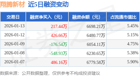 证券之星消息,1月13日,翔腾新材(001373)融资买入884.64万元,融资偿还667.2万元,融资净买入217.44万元,融资余额6698.21万元,近20个交易日中有12个交易日出现融资净买入。