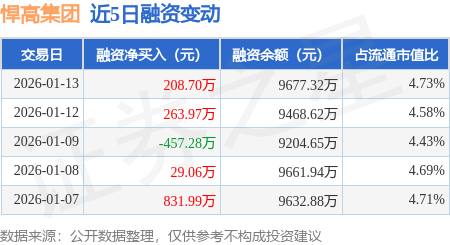 证券之星消息,1月13日,悍高集团(001221)融资买入731.27万元,融资偿还522.57万元,融资净买入208.7万元,融资余额9677.32万元。