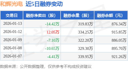证券之星消息,1月13日,和辉光电(688538)融资买入3066.36万元,融资偿还2962.39万元,融资净买入103.98万元,融资余额5.21亿元。