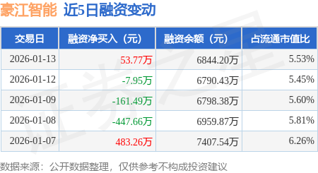 证券之星消息,1月13日,豪江智能(301320)融资买入881.64万元,融资偿还827.88万元,融资净买入53.77万元,融资余额6844.2万元。
