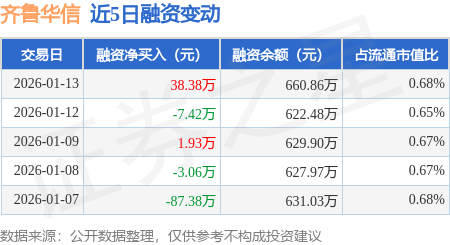 证券之星消息,1月13日,齐鲁华信(920832)融资买入136.8万元,融资偿还98.42万元,融资净买入38.38万元,融资余额660.86万元。