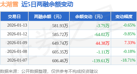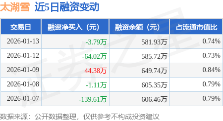 证券之星消息,1月13日,太湖雪(920262)融资买入131.37万元,融资偿还135.16万元,融资净卖出3.79万元,融资余额581.93万元。