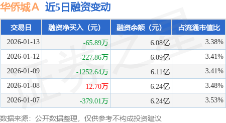 证券之星消息,1月13日,华侨城A(000069)融资买入3089.16万元,融资偿还3155.05万元,融资净卖出65.89万元,融资余额6.08亿元。