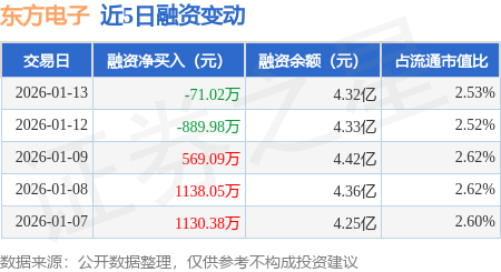 证券之星消息,1月13日,东方电子(000682)融资买入5959.64万元,融资偿还6030.66万元,融资净卖出71.02万元,融资余额4.32亿元。