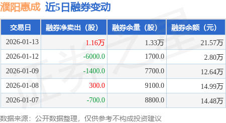 证券之星消息,1月13日,濮阳惠成(300481)融资买入1916.08万元,融资偿还1993.27万元,融资净卖出77.18万元,融资余额2.7亿元。