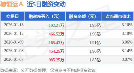 证券之星消息,1月13日,穗恒运A(000531)融资买入1134.44万元,融资偿还1236.66万元,融资净卖出102.21万元,融资余额1.95亿元,近20个交易日中有12个交易日出现融资净买入。
