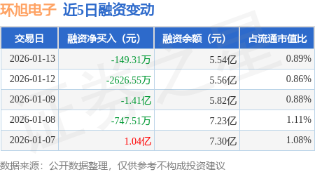 证券之星消息,1月13日,环旭电子(601231)融资买入1.06亿元,融资偿还1.07亿元,融资净卖出149.31万元,融资余额5.54亿元,近20个交易日中有13个交易日出现融资净买入。
