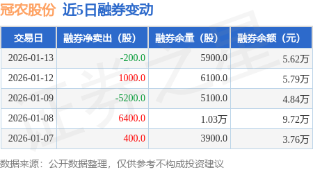 证券之星消息,1月13日,冠农股份(600251)融资买入1804.36万元,融资偿还2104.24万元,融资净卖出299.88万元,融资余额4.6亿元。