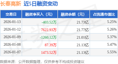 证券之星消息,1月13日,长春高新(000661)融资买入2.42亿元,融资偿还2.46亿元,融资净卖出403.52万元,融资余额21.73亿元。