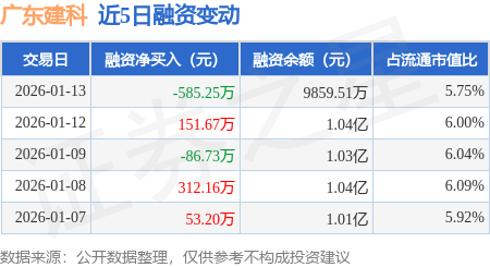 证券之星消息,1月13日,广东建科(301632)融资买入836.71万元,融资偿还1421.96万元,融资净卖出585.25万元,融资余额9859.51万元。