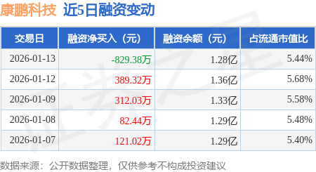 证券之星消息,1月13日,康鹏科技(688602)融资买入1472.16万元,融资偿还2301.54万元,融资净卖出829.38万元,融资余额1.28亿元,近20个交易日中有11个交易日出现融资净买入。