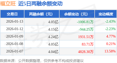 证券之星消息,1月13日,福立旺(688678)融资买入2092.99万元,融资偿还3098.71万元,融资净卖出1005.72万元,融资余额4.04亿元。