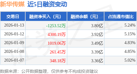 证券之星消息,1月13日,新华传媒(600825)融资买入4161.21万元,融资偿还5414.73万元,融资净卖出1253.52万元,融资余额3.8亿元。