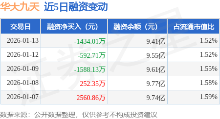 证券之星消息,1月13日,华大九天(301269)融资买入1.09亿元,融资偿还1.23亿元,融资净卖出1434.01万元,融资余额9.41亿元。
