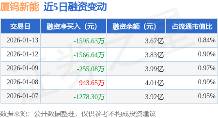 证券之星消息,1月13日,厦钨新能(688778)融资买入6657.38万元,融资偿还8253.01万元,融资净卖出1595.63万元,融资余额3.67亿元。