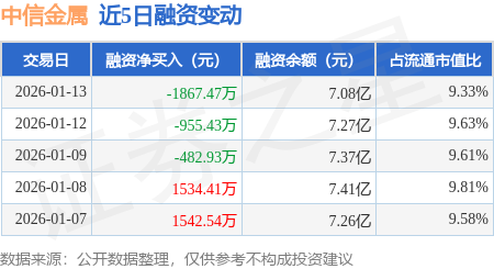 证券之星消息,1月13日,中信金属(601061)融资买入3886.62万元,融资偿还5754.1万元,融资净卖出1867.47万元,融资余额7.08亿元。