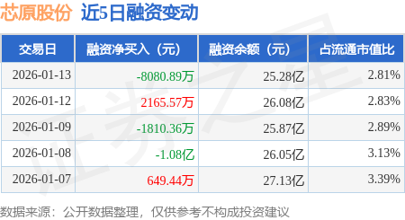 证券之星消息,1月13日,芯原股份(688521)融资买入4.92亿元,融资偿还5.73亿元,融资净卖出8080.89万元,融资余额25.28亿元,近20个交易日中有11个交易日出现融资净买入。
