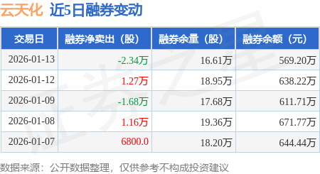 证券之星消息,1月13日,云天化(600096)融资买入2.07亿元,融资偿还3.13亿元,融资净卖出1.05亿元,融资余额20.09亿元。