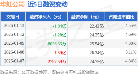证券之星消息,1月13日,华虹公司(688347)融资买入3.21亿元,融资偿还5.05亿元,融资净卖出1.84亿元,融资余额22.42亿元。