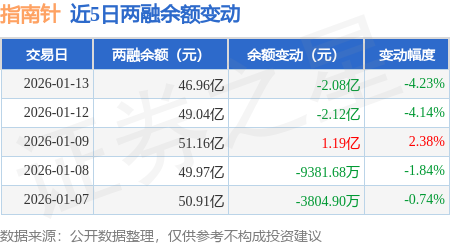 证券之星消息,1月13日,指南针(300803)融资买入6.61亿元,融资偿还8.62亿元,融资净卖出2.01亿元,融资余额46.77亿元。