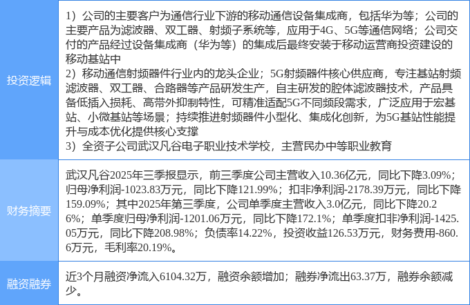 证券之星消息,武汉凡谷1月14日涨停收盘,收盘价15.16元。该股于11点11分涨停,4次打开涨停,截止收盘封单资金为5832.96万元,占其流通市值0.75%。