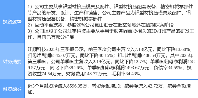 该股为液冷服务器,低空经济,有色金属概念热股,当日液冷服务器概念上涨1.26%,低空经济概念上涨0.74%,有色金属概念上涨0.58%。
