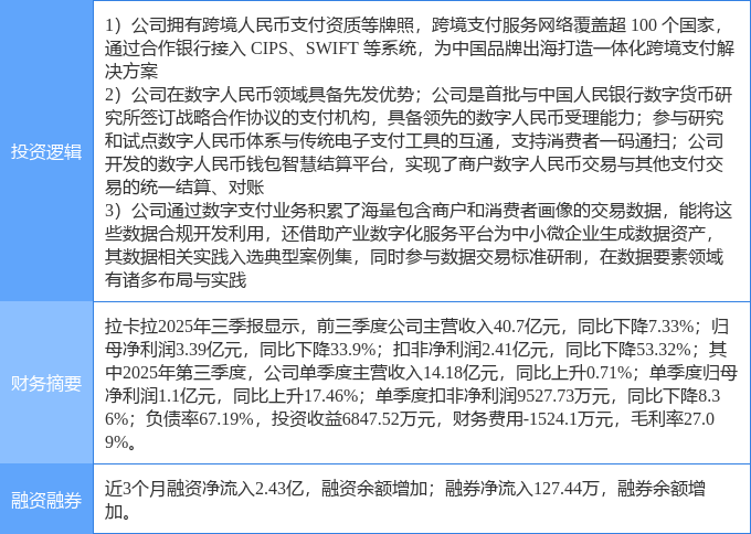 该股为跨境支付,数字人民币,数据要素概念热股,当日跨境支付概念上涨4.63%,数字人民币概念上涨4.16%,数据要素概念上涨3.87%。