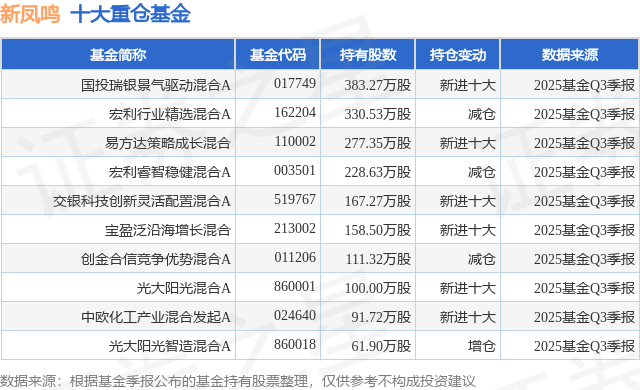 重仓新凤鸣的前十大公募基金请见下表: