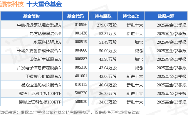 重仓源杰科技的前十大公募基金请见下表: