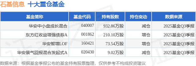 重仓石基信息的公募基金请见下表: